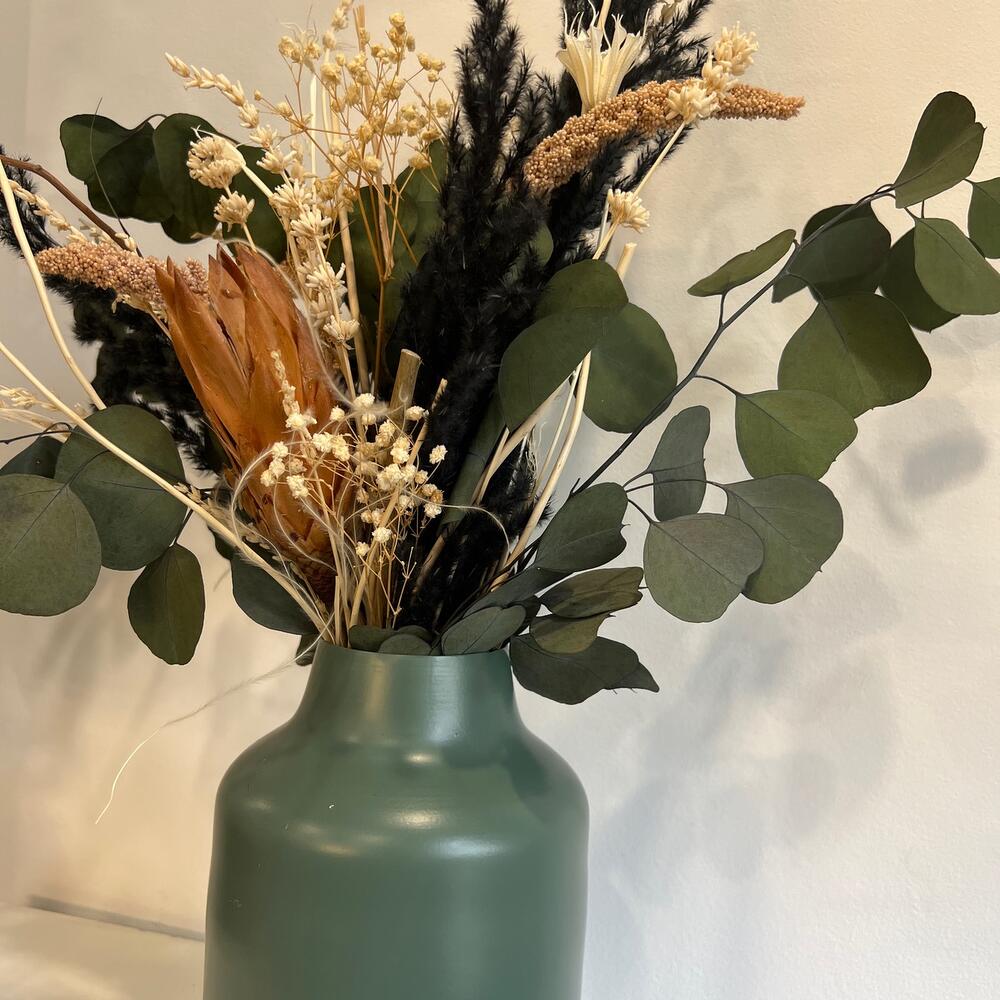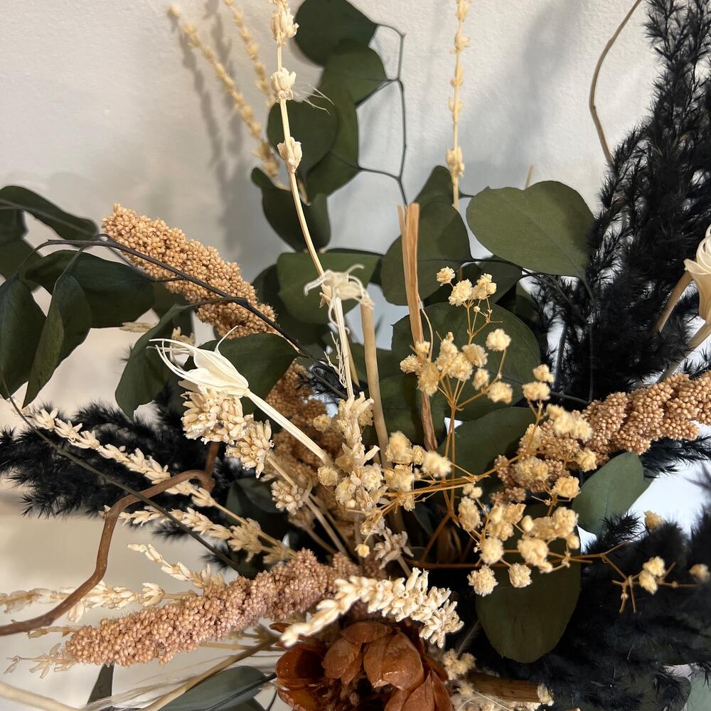 Интерьерная композиция из стабилизированных цветов и сухоцветов