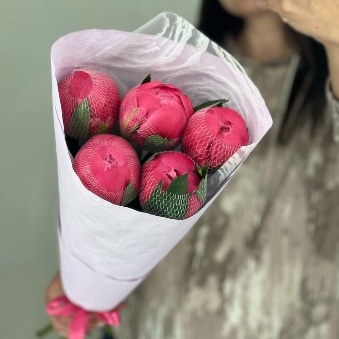 Пион Коралл Шарм (Coral Charm) – 5 шт.Упаковка – 2 шт.Лента атласная – 1 шт.