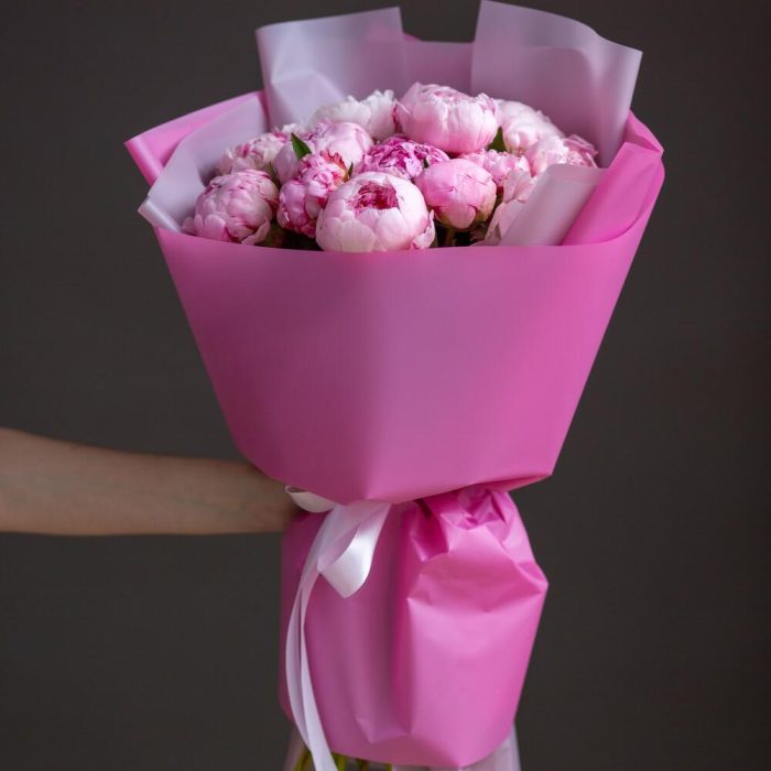 Пион sarah bernhardt – 15 шт.Упаковка матовая – 2 шт.Лента атласная – 1 шт.