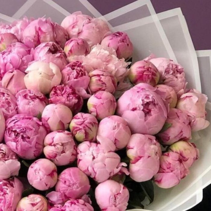 Пион Сара Бернар – 51 шт.Упаковка дизайнерская – 2 шт.Лента атласная – 2 шт.Открыточка с вашими пожеланиями – 1 шт.хорошее настроение – 100 шт.инструкция по уходу за цветами – 1 шт.коробка переноска – 1 шт.Кризал – 1 шт.