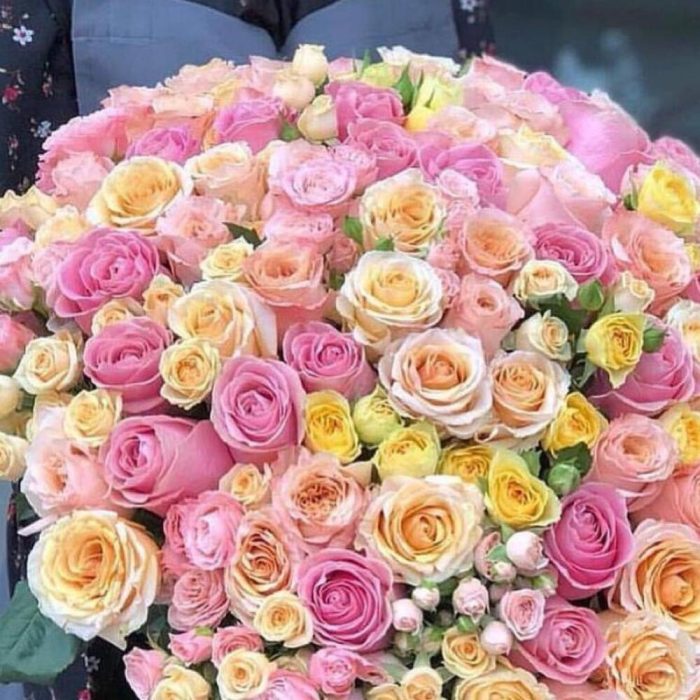 Роза одноголовая – 60 шт.Кустовая роза – 41 шт.Лента атласная – 2 шт.Открыточка с вашими пожеланиями – 1 шт.хорошее настроение – 100 шт.инструкция по уходу за цветами – 1 шт.коробка переноска – 1 шт.Кризал – 1 шт.