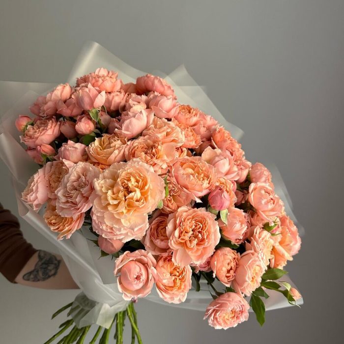 пионовидная кустовая роза джульетта – 21 шт.Упаковка дизайнерская – 5 шт.