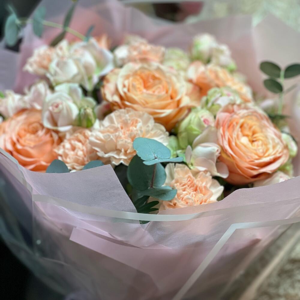 Гвоздики, Кустовые розы, Пионовидные розы, Розы