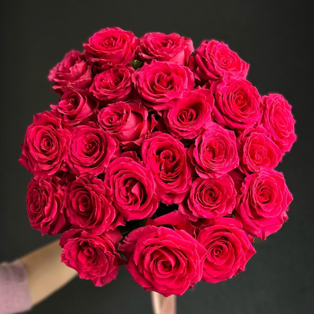 розы одноголовые – 25 шт.Атласная лента – 1 шт.