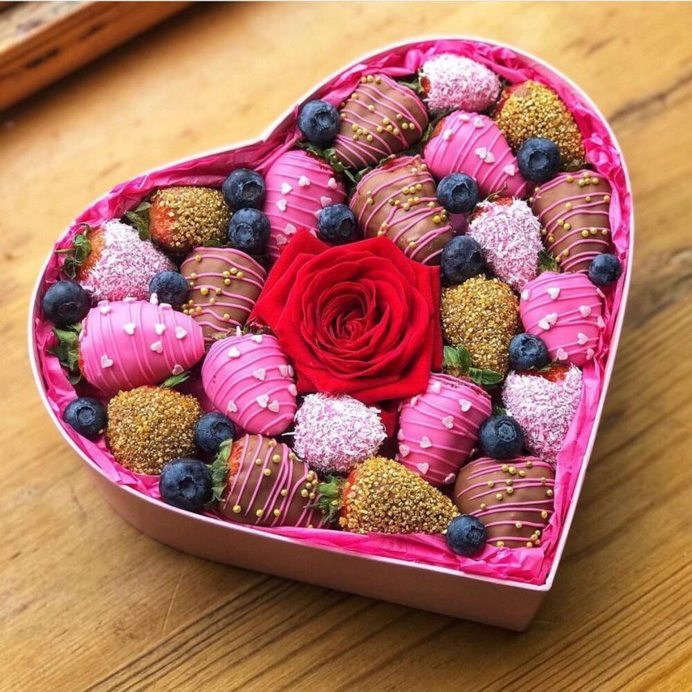 Клубника в шоколаде – 22 шт.Голубика – 15 гр.Роза – 1 шт.
