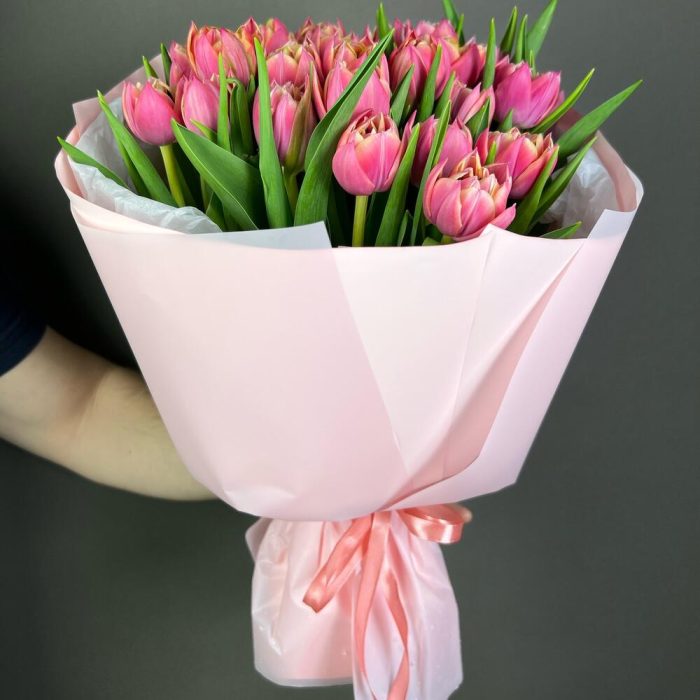 Тюльпан – 25 шт.Лента атласная – 1 шт.Бумага тишью – 1 шт.пленка калька – 1 шт.